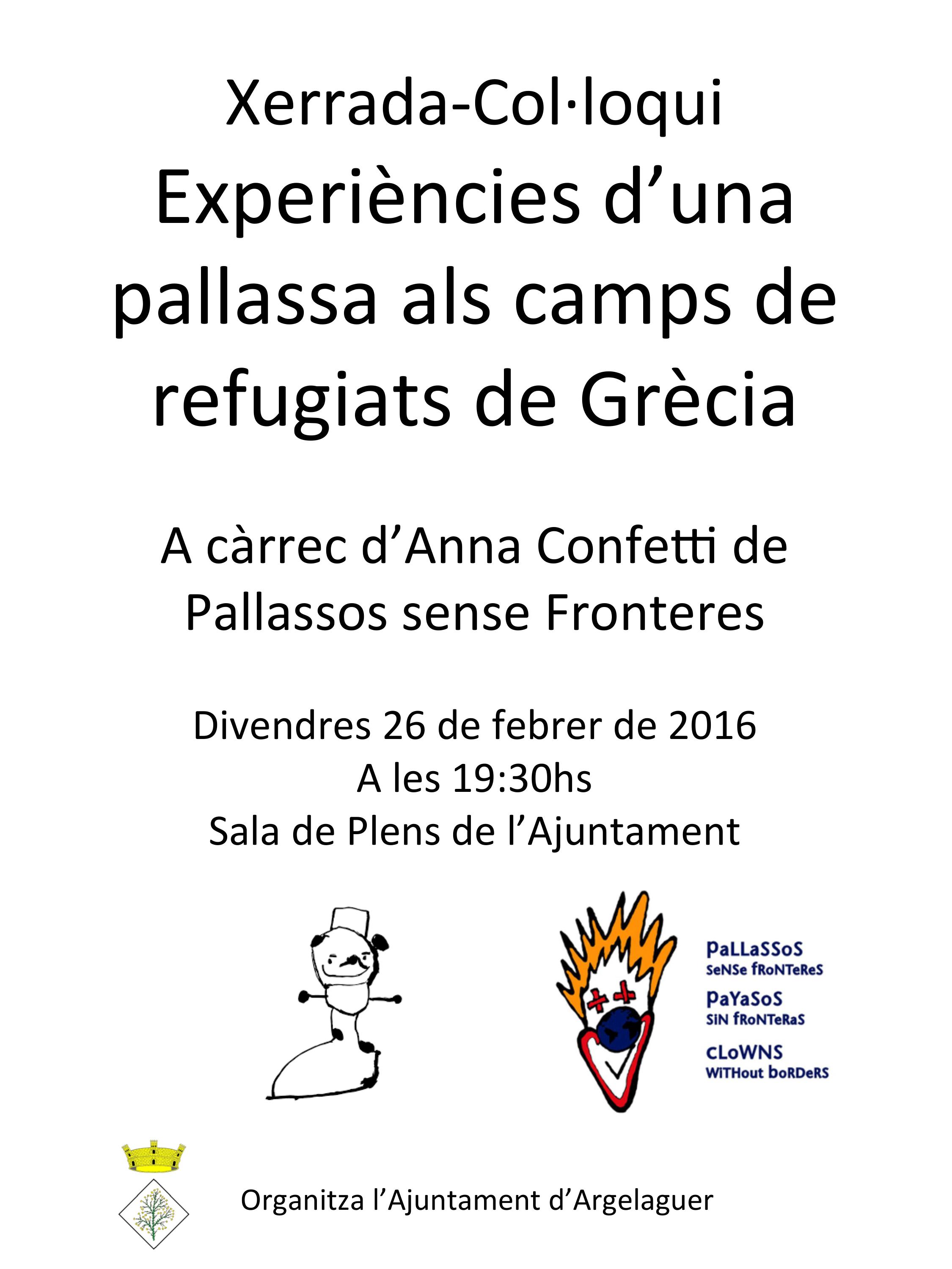 A càrrec d’Anna Confetti de Pallassos sense Fronteres Divendres 26 de febrer A les 19:30h Sala de Plens de l’Ajuntament Versió PDF: cartell-xerrada