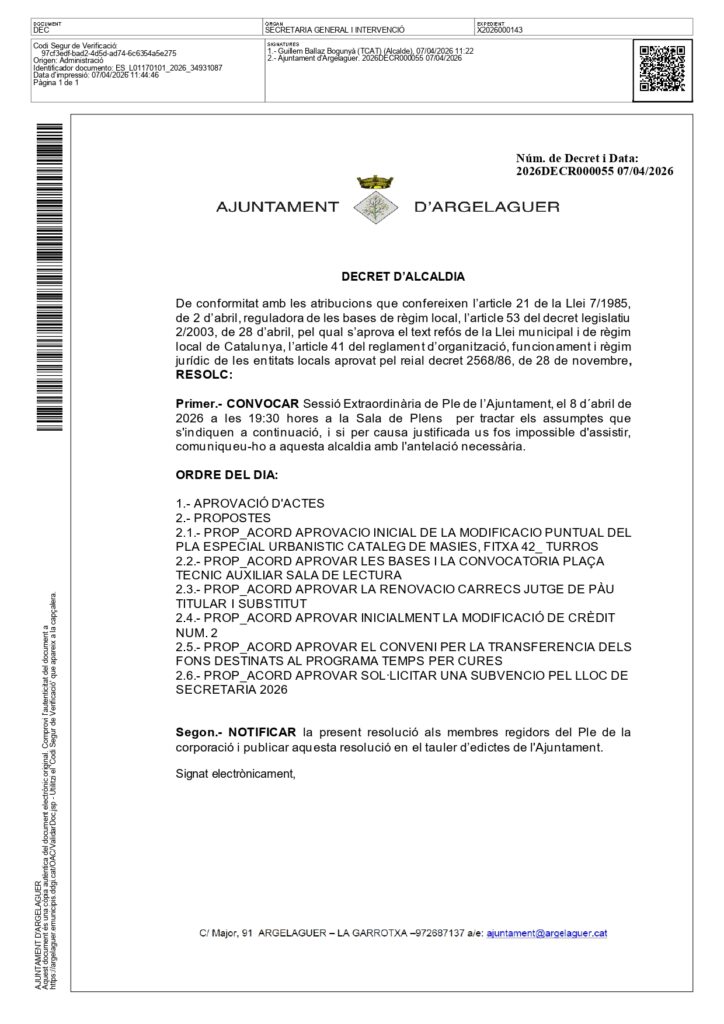 Notícies CONVOCATÒRIA PLE EXTRAORDINÀRIA 8/04/2026 07/04/2026 Consulteu la convocatòria amb PDF < Entrada Anterior
